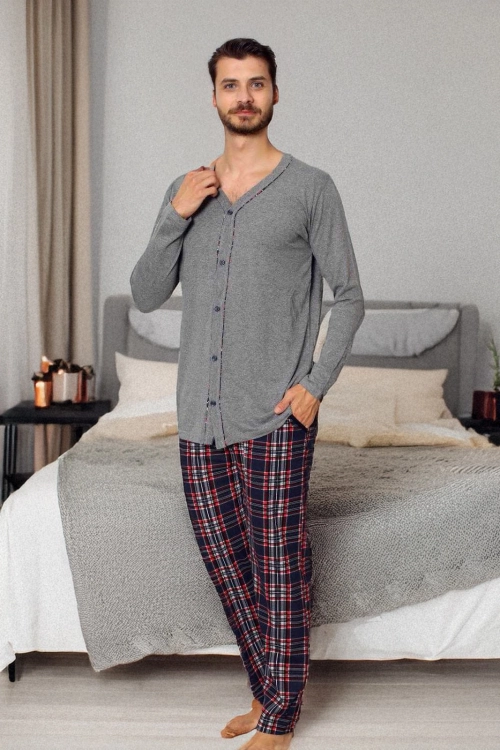 - Изключителни мъжки пижами от памучен материал. Моделът има дълги ръкави и крачета. Горната част е с копчета. Комфорт и елегантност в едно!