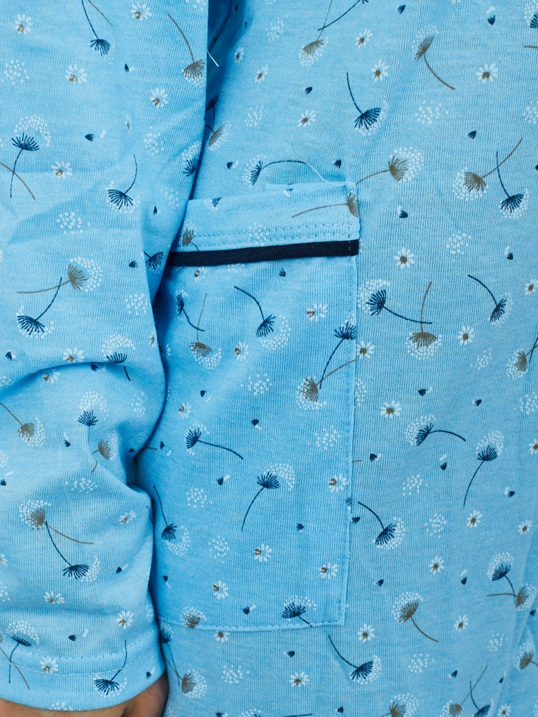 • Дамска рокля за нощувки от 100% мек памук. Моделът се закопчава с копчета, има леко разширен силует, кръгло деколте, дълъг ръкав и джоб. ЗАБЕЛЕЖКА: Точност на измерването (+/-) 1 см.