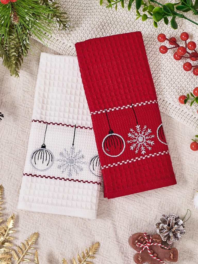 - Комплект от памучни бански кърпи. Комплектът включва: 2 броя с размери 40 см х 60 см. Кърпите перфектно ще заснемат атмосферата по време на Коледните празници!
