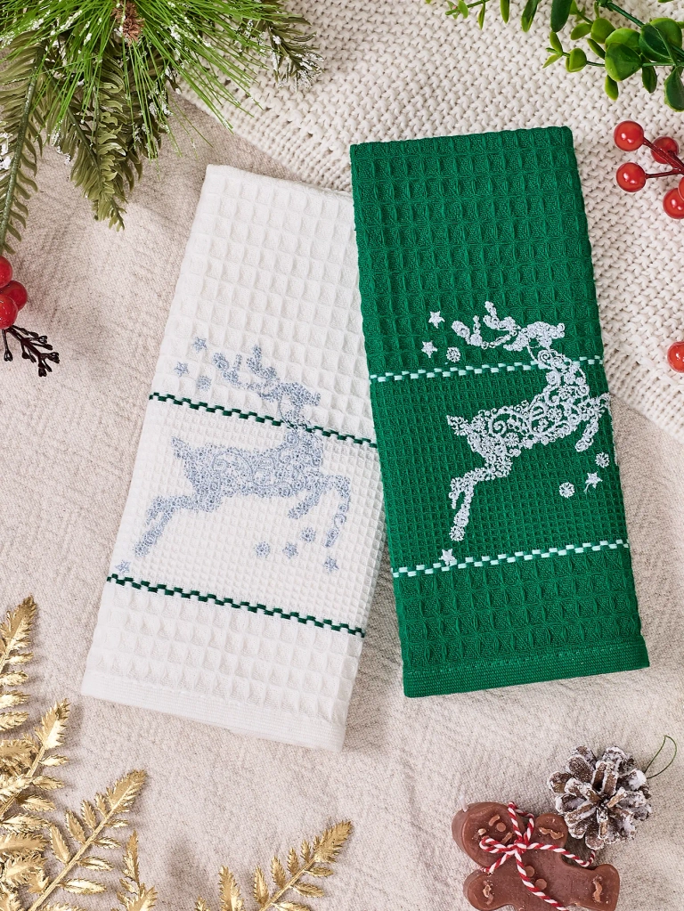 - Комплект от памучни бански кърпи. Комплектът включва: 2 броя с размери 40 см х 60 см. Кърпите ще създадат перфектната атмосфера по време на Коледа!