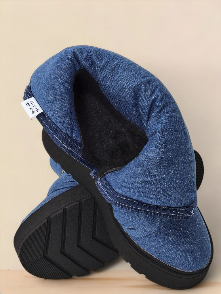 - Дамски зимни ботуши, изработени от комбинация от плат и велурена еко-кожа. Ботуши с клинова пета. Деликатна изолация от вътрешната страна. Моделът е с елегантни декорации в горната част. Перфектни за по-хладни дни.