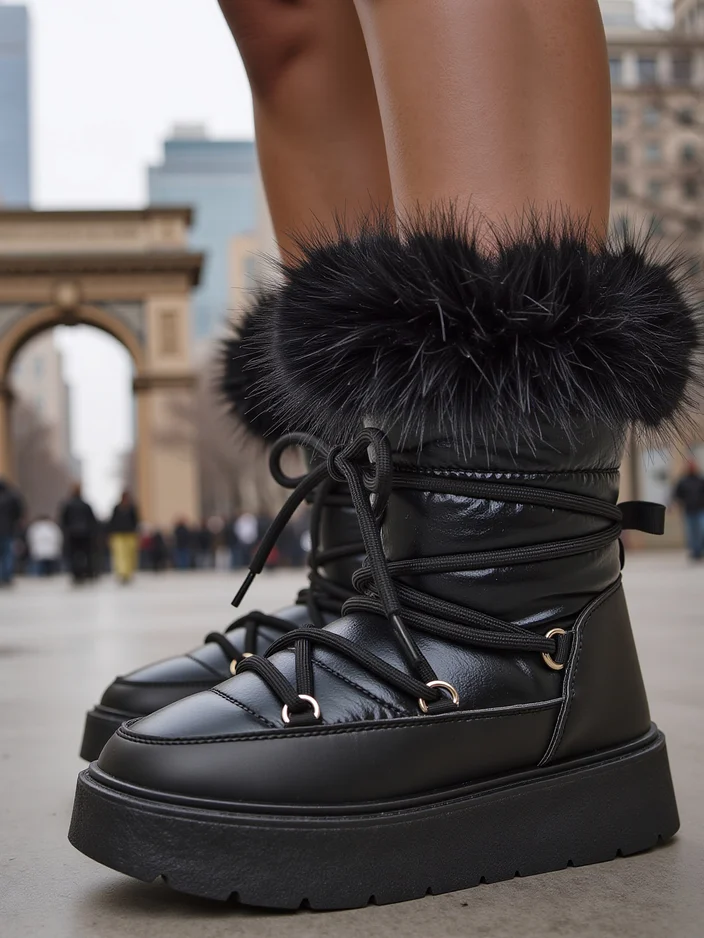 - Дамски снежни ботуши с неопренова връзка и еко-кожа. Вътре има комфортен пух, обувките са с бързо обуване и връзки. Перфектни за зимата!