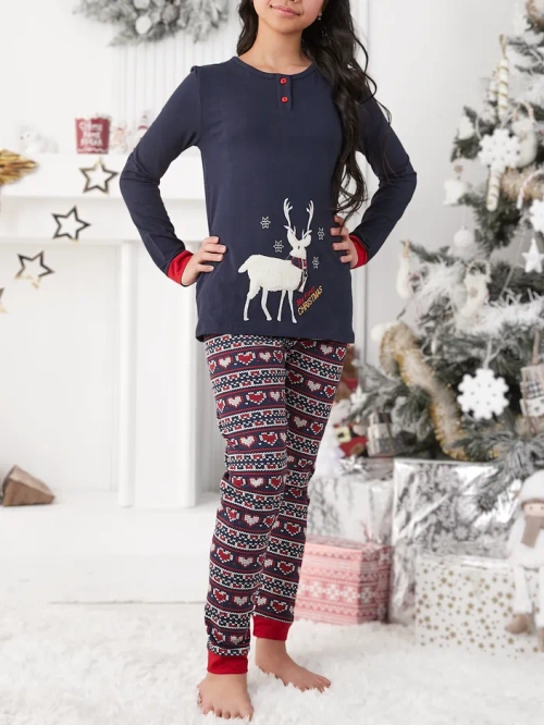 Кралска мода Коледни памучни детски пижами с полярни елени
