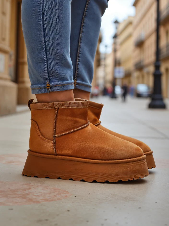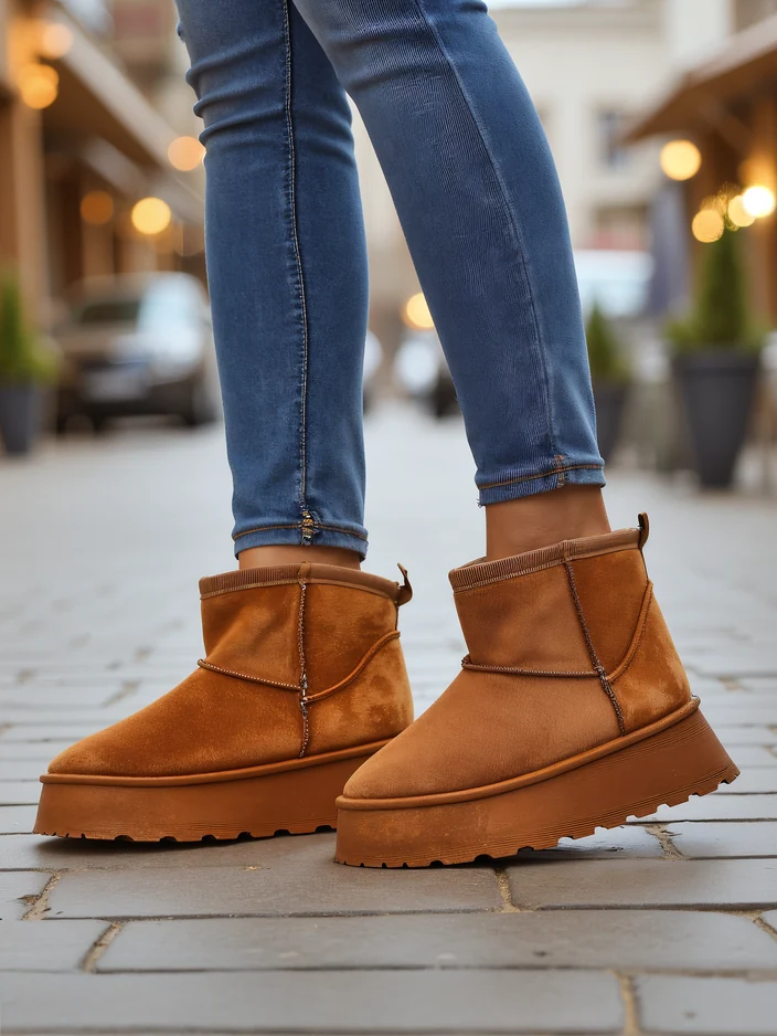 - Отлични дамски зимни ботуши в стил снежни ботуши на платформа. Горната част е изработена от изкуствен велур, а интериорът е изолиран с кожа. Идеална основа за зимата!