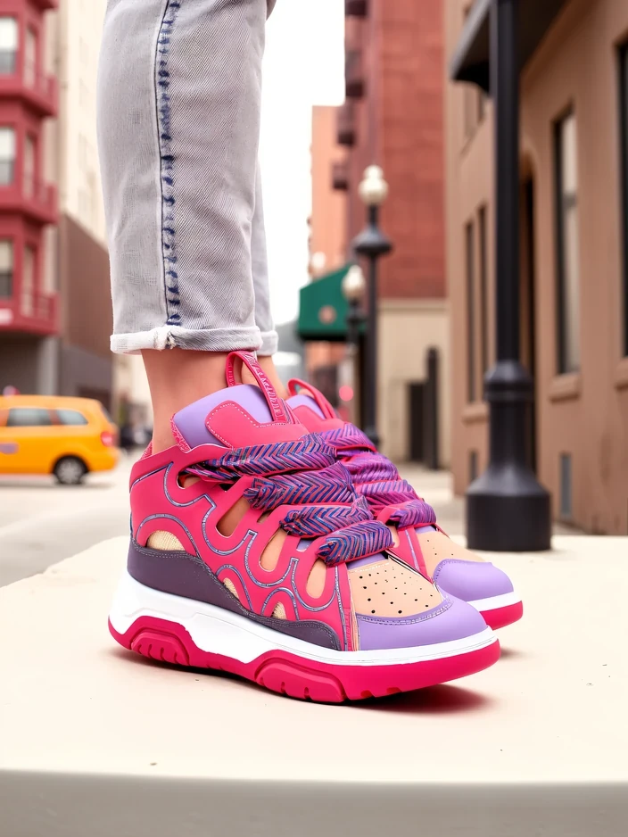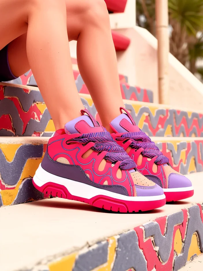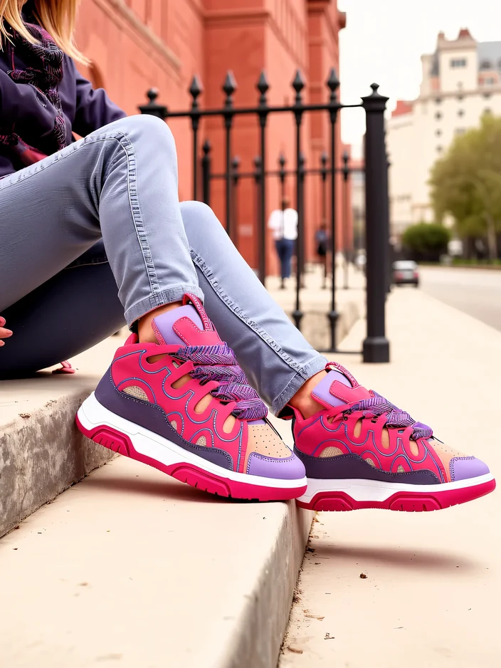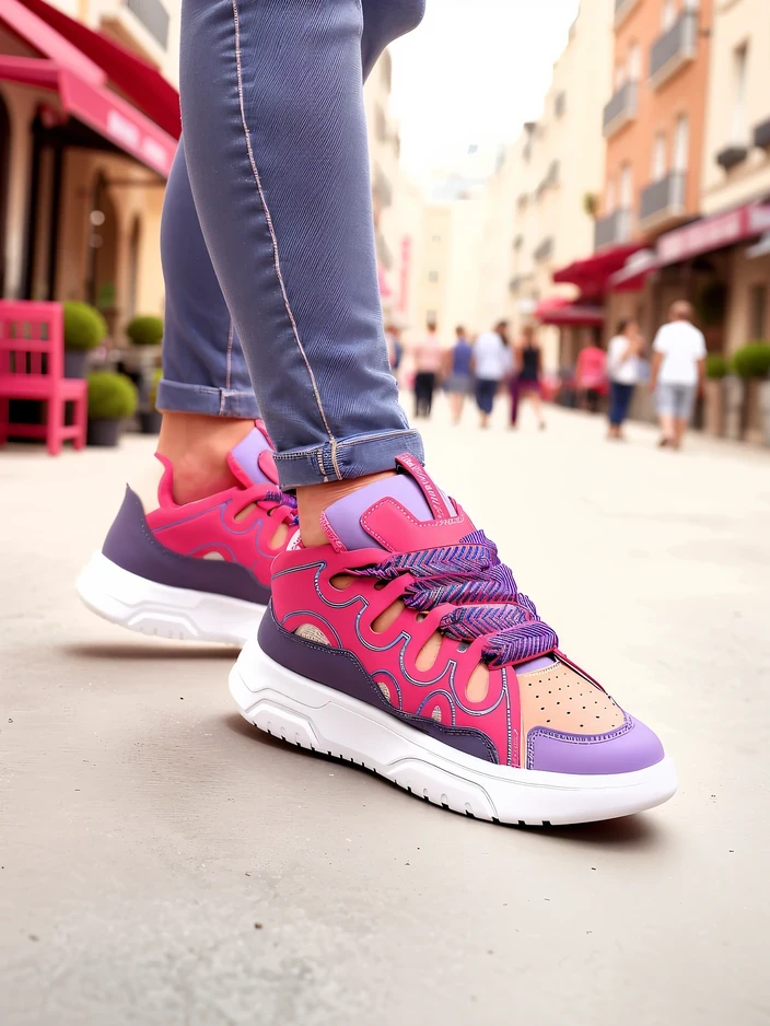 - Модерни дамски спортни маратонки с по-дебела подметка, изработени от екологична кожа и екологиченnubuck. Вътре има текстилна стелка, а моделът е с връзки. Те ще бъдат страхотно допълнение към ежедневните облекла.