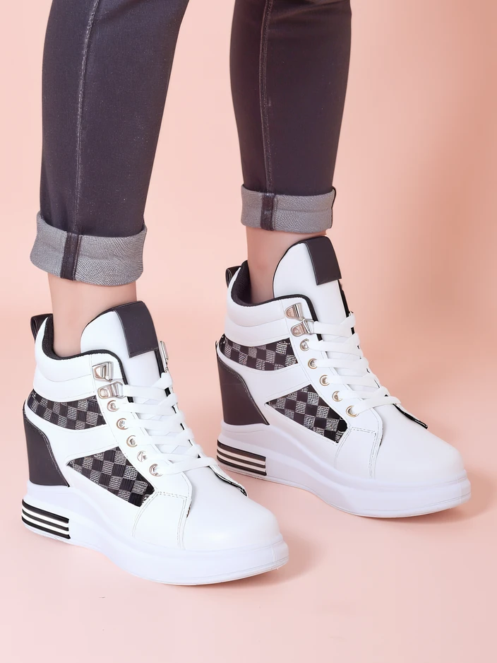 • Стилни дамски платформени кецове, изработени от еко-кожа и текстилни вложки с принт. Вътре има мека текстилна стелка. Обувките са с връзки. Те ще бъдат страхотен аксесоар за ежедневни тоалети.