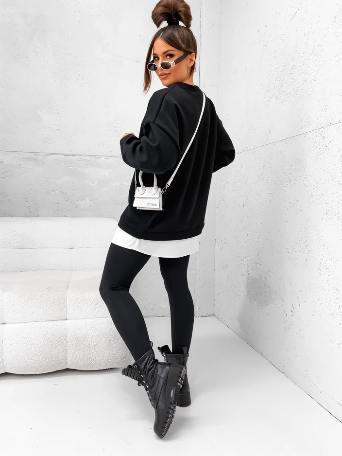 - Добавете чар на вашите аутфити с нашата оувърсайз дамска суитшърт. Тя се наоблича през главата, има кръгло деколте и дълги ръкави. Моделът притежава ципирана отделяща се долна част, която наподобява риза. Перфектна за ежедневието, когато искате да се чувс