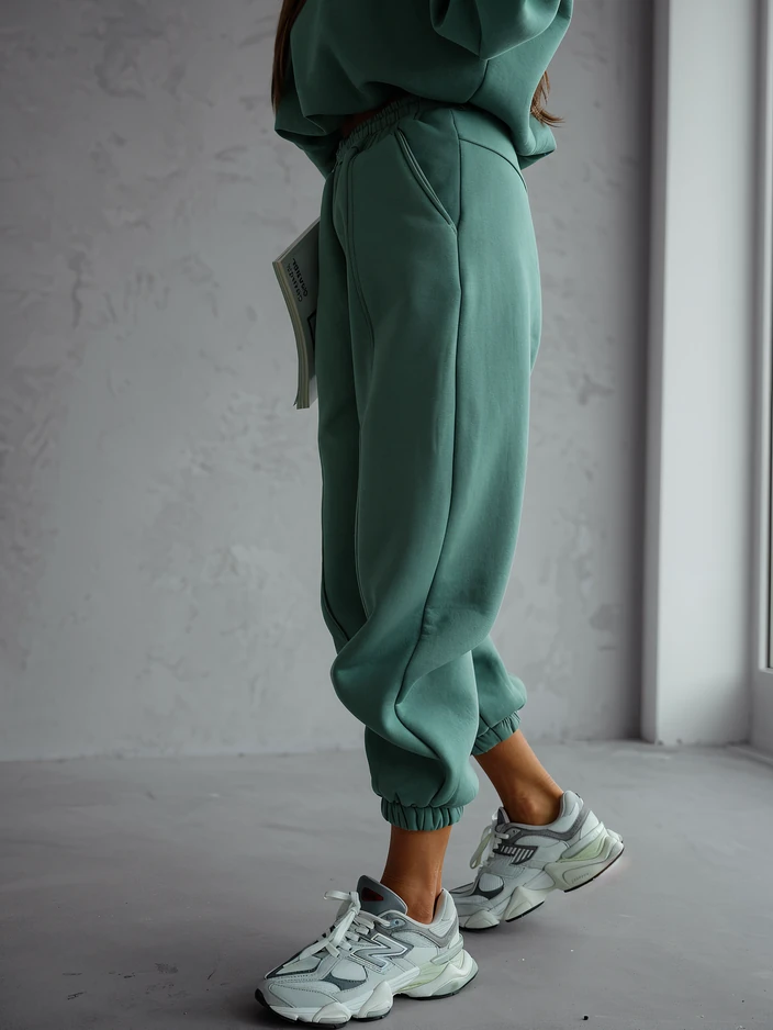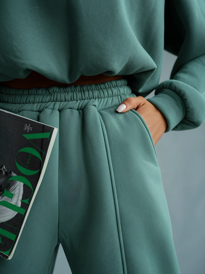 • Удобен дамски комплект от два части - състои се от горна част с дълги ръкави, панталони с еластичен колан и 2 джоба. Задължителен за ежедневна носене! ЗАБЕЛЕЖКА: Точността на измерванията (+/-) 1 см.