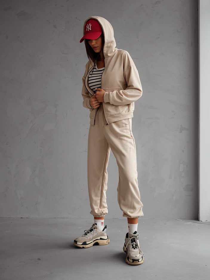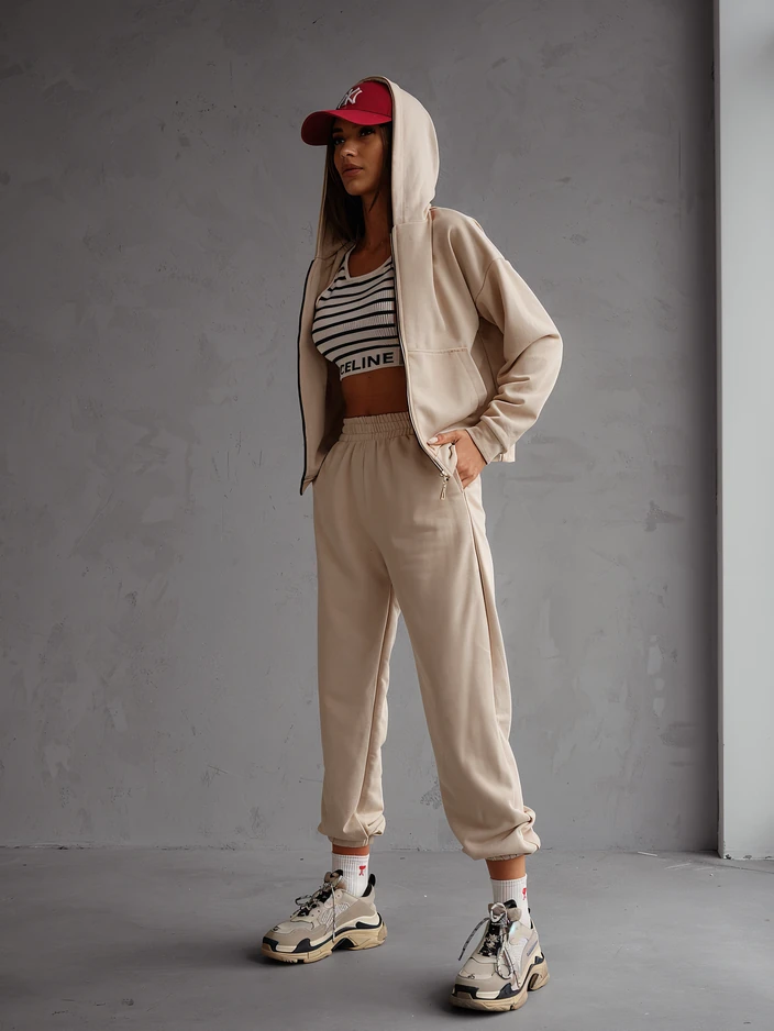 - Удобен комплект дамски tracksuit - състои се от суичър с цип и дълги ръкави, панталони с еластичен колан и 2 джоба. Необходимост за ежедневно носене! ЗАБЕЛЕЖКА: Точност на измерванията (+/-) 1 см.