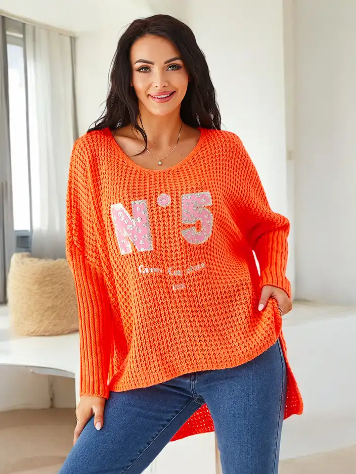 Роялфешън акрилен дамски плетен пуловер с надписи