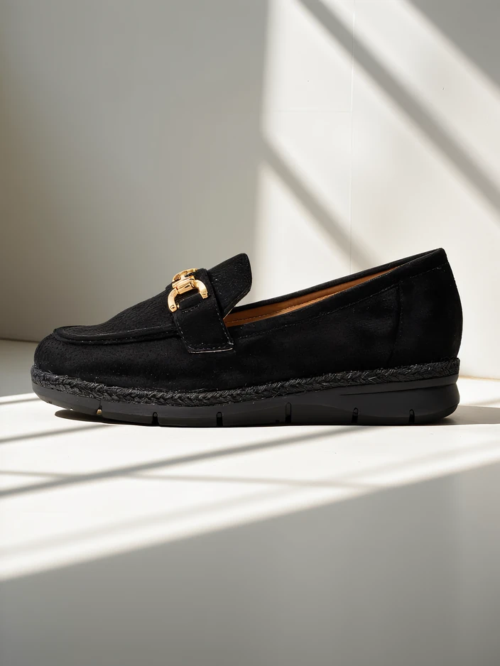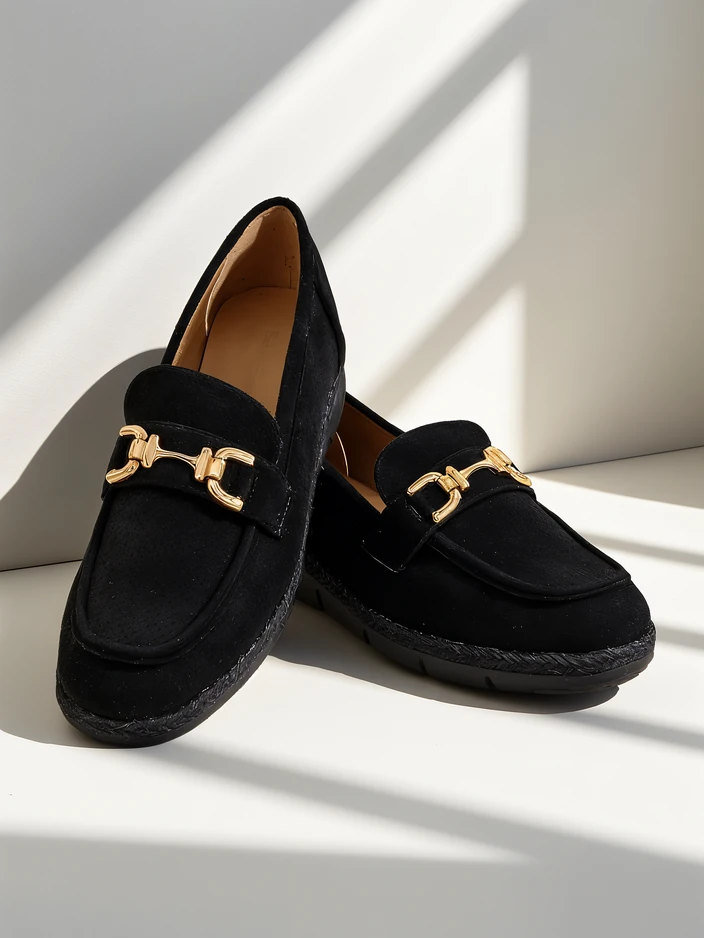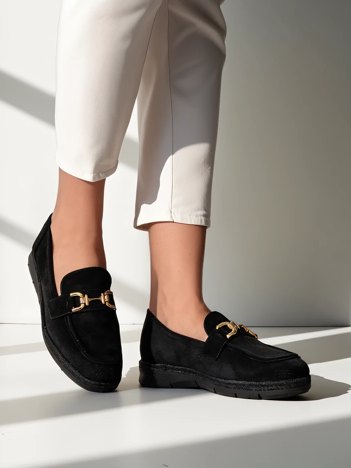 - Класически женски обувки на платформа с равна подметка. Моделът е изработен от еко-сюде и има еко-кожа стелка. Носът е украсен с деликатна декорация. Нещо, което задължително трябва да присъства в гардероба на всяка жена!