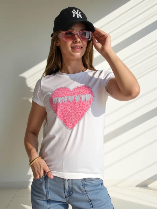 - Оригинална женска блуза с кръгло деколте, изработена от мек и приятен на допир плат. Цялата част е украсена с впечатляващи пайети, а късият ръкав придава лекота. Перфектен избор за създаване на модни и стилни ансамбли!
