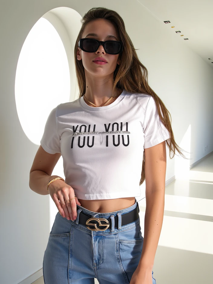 - Еластичен топ с къси ръкави, изработен от приятен материал. Моделът има кръгло деколте и е украсен с надпис. Перфектна основа за много неформални визии! ЗАБЕЛЕЖКА: Точността на измерванията (+/-) 1 см.