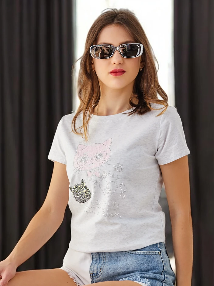 • Оригинална дамска блуза с кръгло деколте, изработена от мек и приятен на допир плат. Цялата част е украсена с привлекателни пайети, а късите ръкави придават усещане за лекота. Перфектен избор за създаване на модни и стилни тоалети!