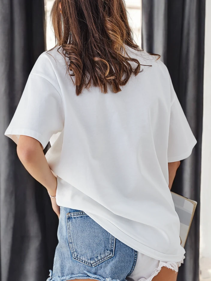 - Памучната дамска тениска е лека и удобна опция за всеки ден. Вдъхновена от камъни за декорация, тя е перфектна за ежедневни стилове. Меката материя осигурява комфорт, а минималистичният дизайн я прави подходяща за различни аутфити.