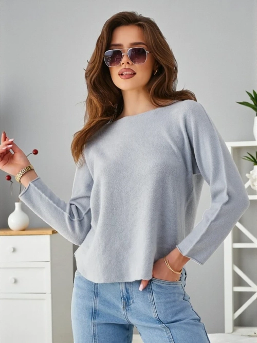 - Damski sweterek wykonany z lekkiej, wiskozowej tkaniny. Posiada długie rękawy i okrągły dekolt, zapewniając komfort i elegancję w codziennych stylizacjach. Dostępny w różnych kolorach, pozwala na łatwe dopasowanie do każdej garderoby!