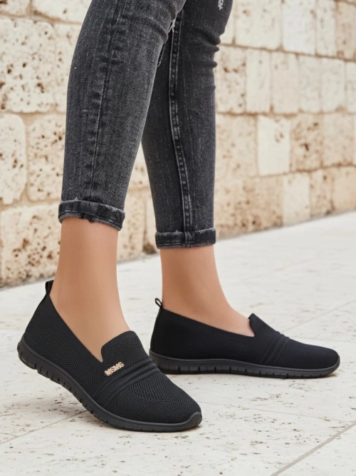 - Sportowe damskie mokasyny na płaskiej podeszwie. Klasyczny model wykonany z tkaniny. Idealna baza na co dzień!