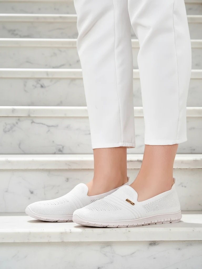- Спортни дамски мокасини на равна подметка. Класически модел, изработен от плат. Идеална база за всеки ден!