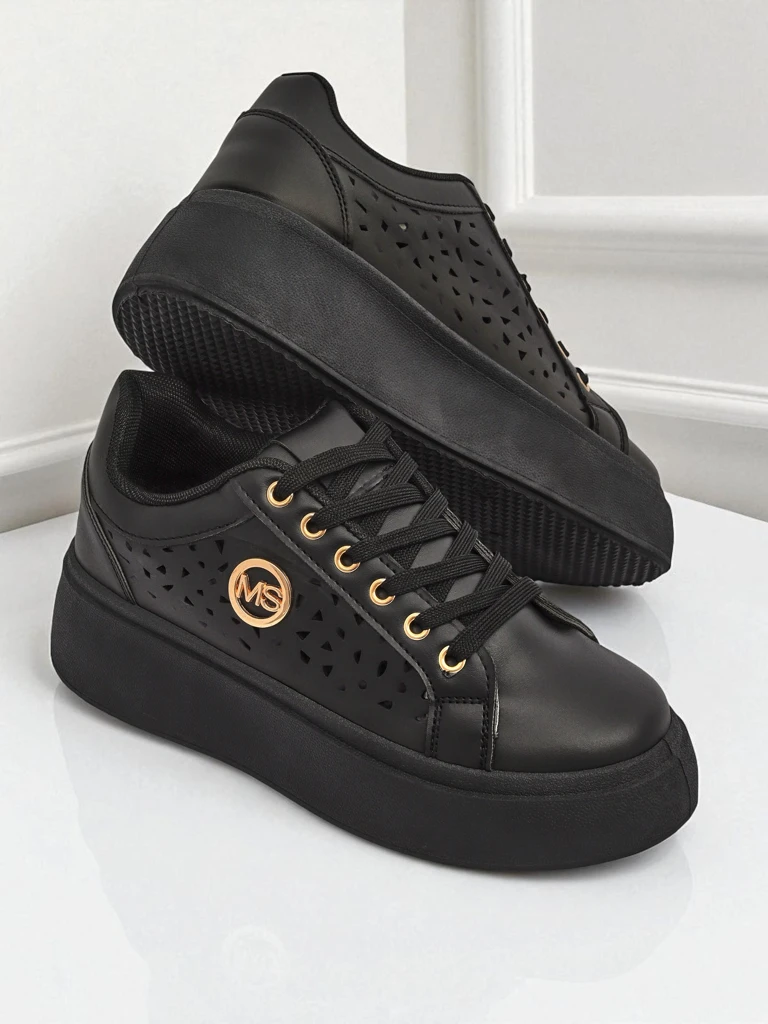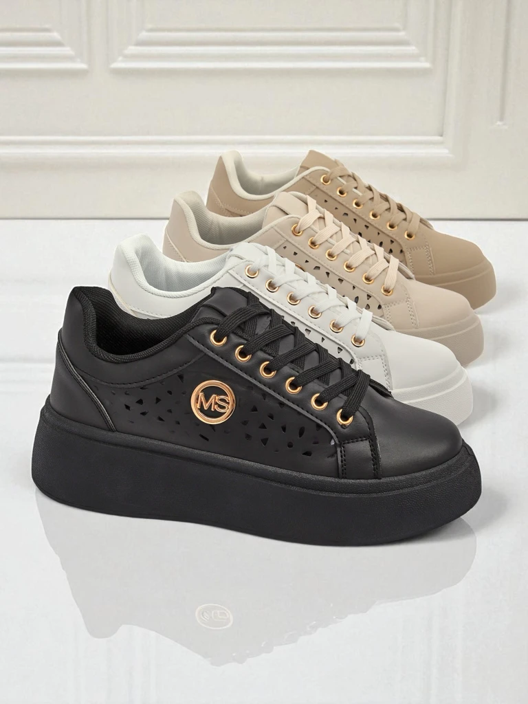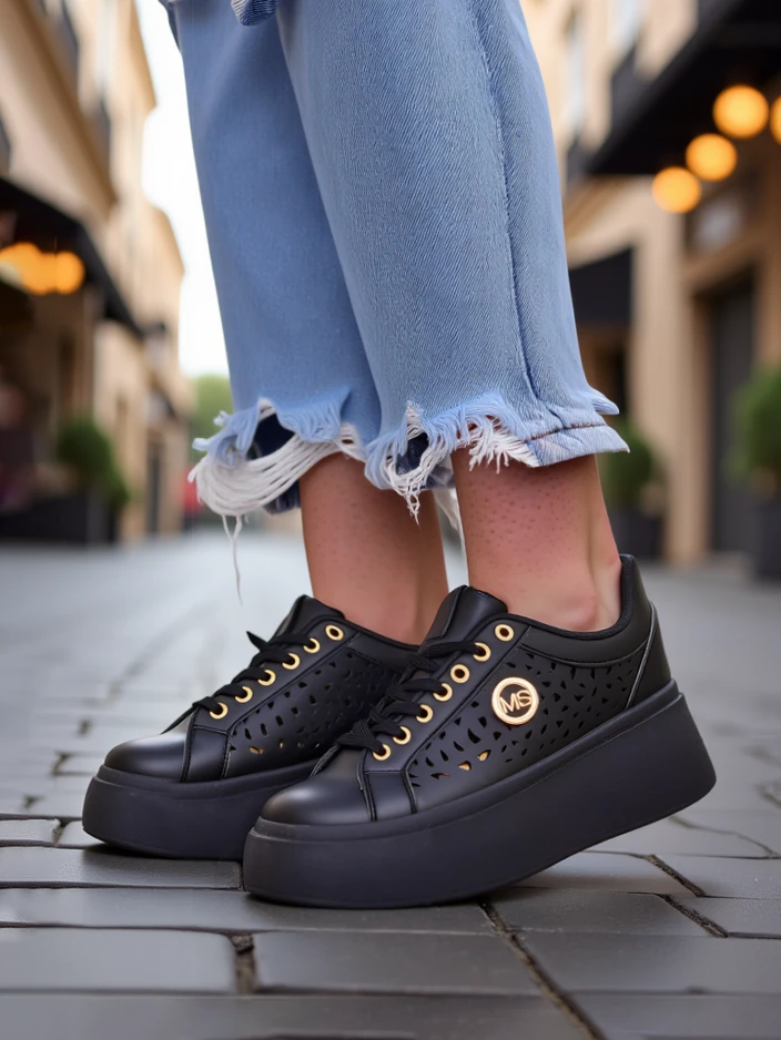 • Дамски ажурни сникърси от еко кожа и текстилна стелка на платформа, съчетаващи комфорт с модерен стил. Идеални за всеки ден, осигуряват лекота и удобство, а финият дизайн добавя елегантност към всяка визия.