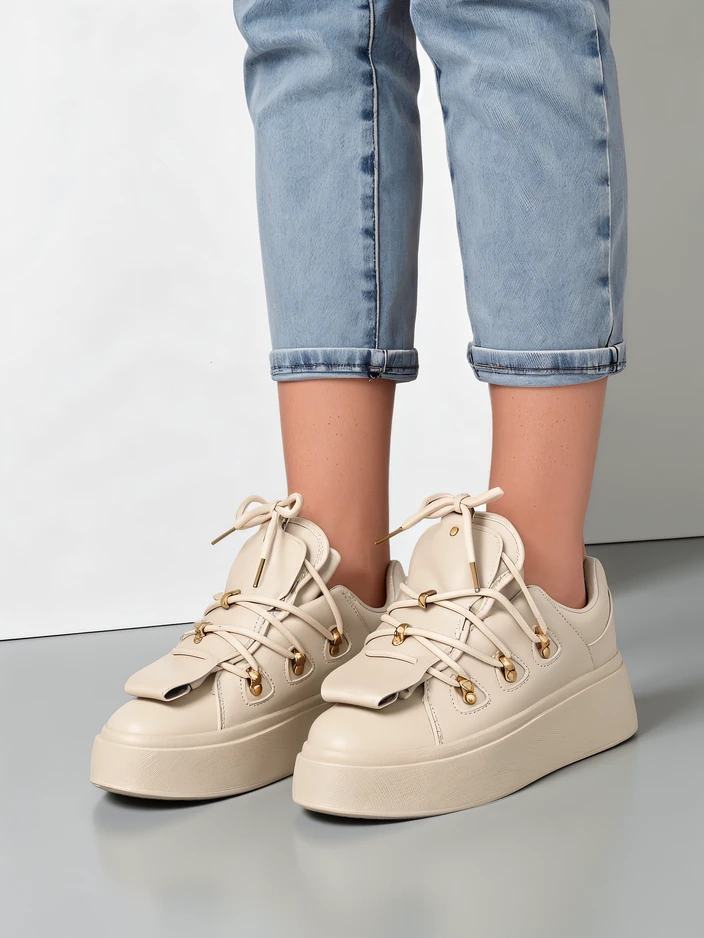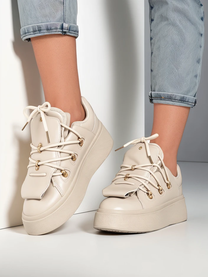 - Спортни женски маратонки на по-дебела подметка. Закопчаване с връзки, изработени от екологична кожа. Интериорът е от приятна материя. Моделът разполага с декоративен език. Перфектни за ежедневна употреба!