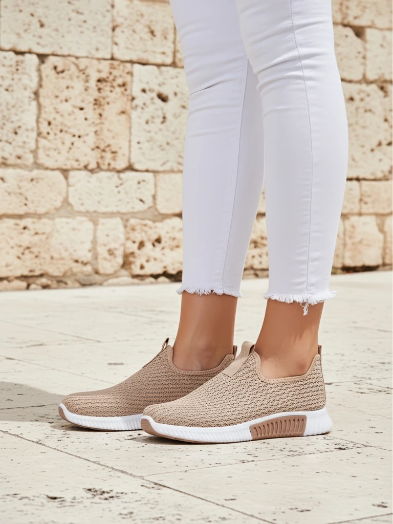 Открийте ново ниво на комфорт с дамските слипони Selene в светлокафяв цвят. Обувките са изработени от висококачествен текстилен плат, гарантиращ дишане и лекота дори при продължително носене. Материалът на горната част се характеризира с голяма еластичност, благодарение на което приляга перфектно към формата на стъпалото. Подплатата от мека материя отвежда влагата и осигурява сухота вътре в обувката през целия ден, което ще оцените особено през лятото и пролетта. Горната част е произведена в процес на прецизно 3D тъкане на мрежа, която, освен високия комфорт, осигурява оптимална вентилация, ограничавайки риска от ожулвания и неприятни миризми. Подметката с височина 2 см и общата височина на тока 3 см са конструирани от устойчива на износване, лека EVA пяна, омекотяваща всяка стъпка. Слипоните Selene нямат връзки – просто ги обуйте и вече можете да се наслаждавате на комфорта. Отличителни предимства: - Ултралека конструкция - Еластична, безшевна материя, щадяща кожата - Универсален, светлокафяв цвят, идеален за много стилове - Дишаща вътрешност и лесна поддръжка Модерни стилове за сезона: 1. Ежедневен стил – комбинирайте слипоните Selene със светли дънки тип скини и бяла ленена риза – идеален комплект за среща с приятели. 2. Спортна елегантност – носете ги с къси клинове, oversized тениска и леко спортно сако, за да получите визия за града или за пътуване. 3. За всеки ден – комбинирайте обувките с миди рокля в естествени цветове и чанта през рамо, създавайки женствен стил за работа или пазаруване. Поддръжка и съхранение: Почиствайте обувките с мека четка или влажна кърпа, като използвате нежен препарат за тъкани. Оставете да изсъхнат естествено, далеч от източници на топлина. Съхранявайте на проветриво място, най-добре с помощта на калъпи, за да запазят формата си. Актуалните модни тенденции залагат на функционалността и минимализма. Обувките Selene се вписват перфектно в стила athleisure и визиите „на спортно“, като същевременно осигуряват изключителен комфорт. Идеален модел за жени, които ценят здравословната мода, комфорта и универсалността.