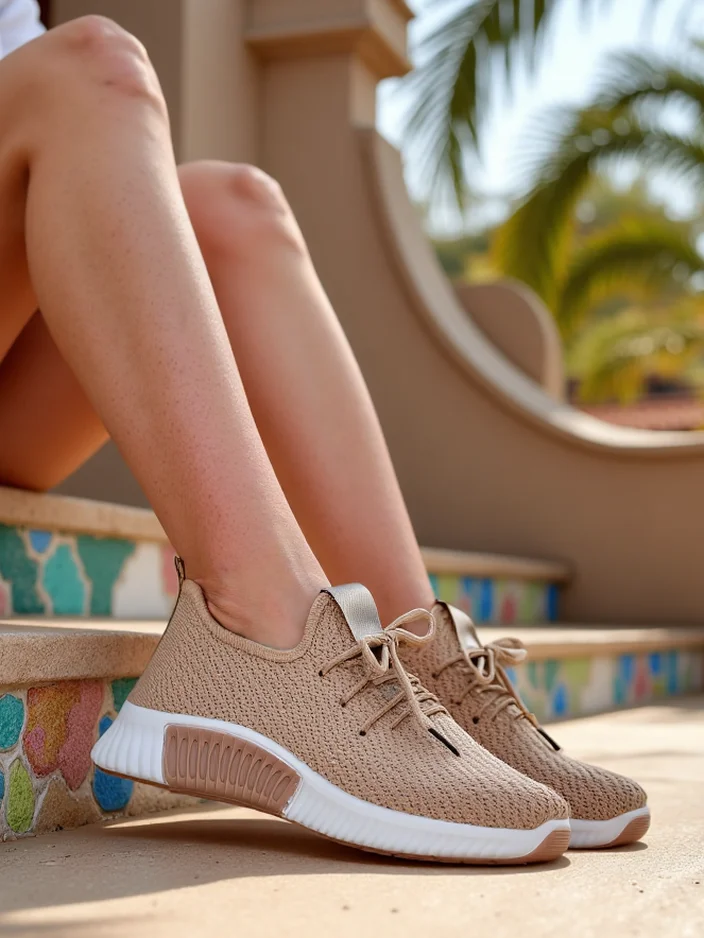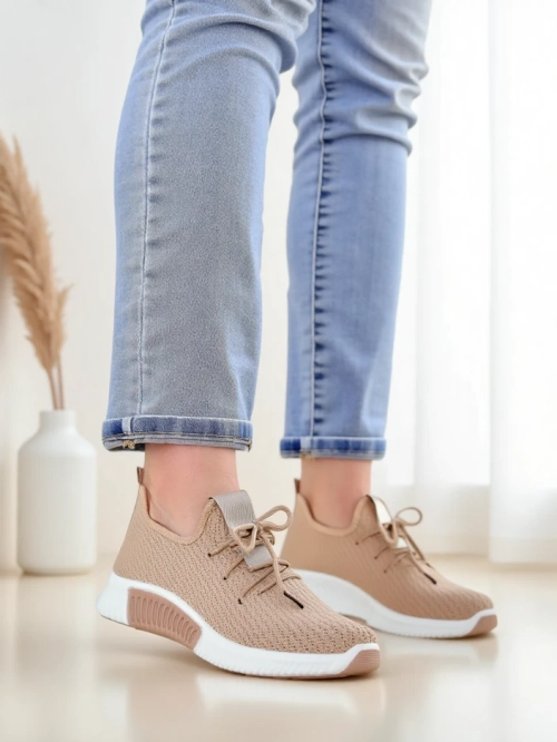 - Оригинални дамски спортни обувки с връзки, изработени от текстил. Гъвкавият горен слой ще се адаптира нежно към стъпалото. Удобни ежедневни дамски обувки!