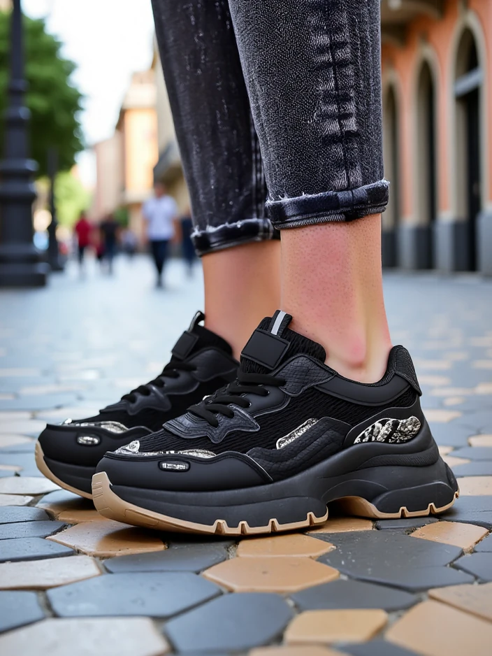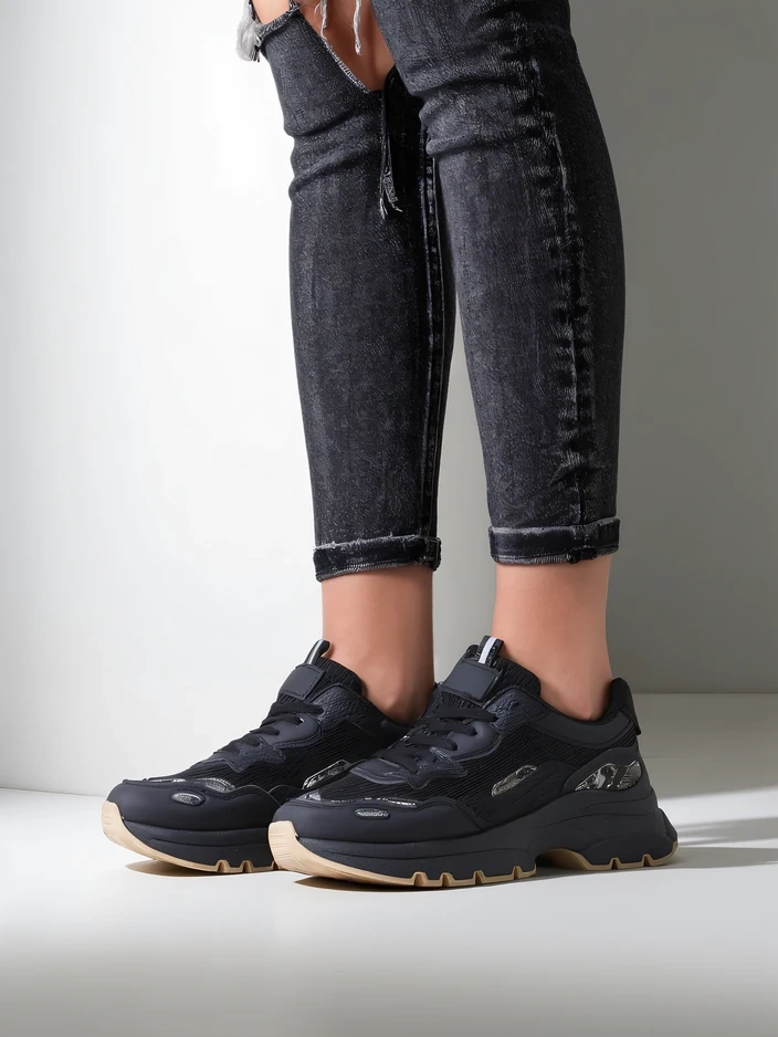 - Стилни дамски маратонки, които съчетават комфорт с модерен дизайн. Моделът е изработен от комбинация от еко-кожа и текстил, с текстилна стелка. Перфектни за ежедневно носене, осигуряващи комфорт и лекота, подходящи за много ежедневни стилове.
