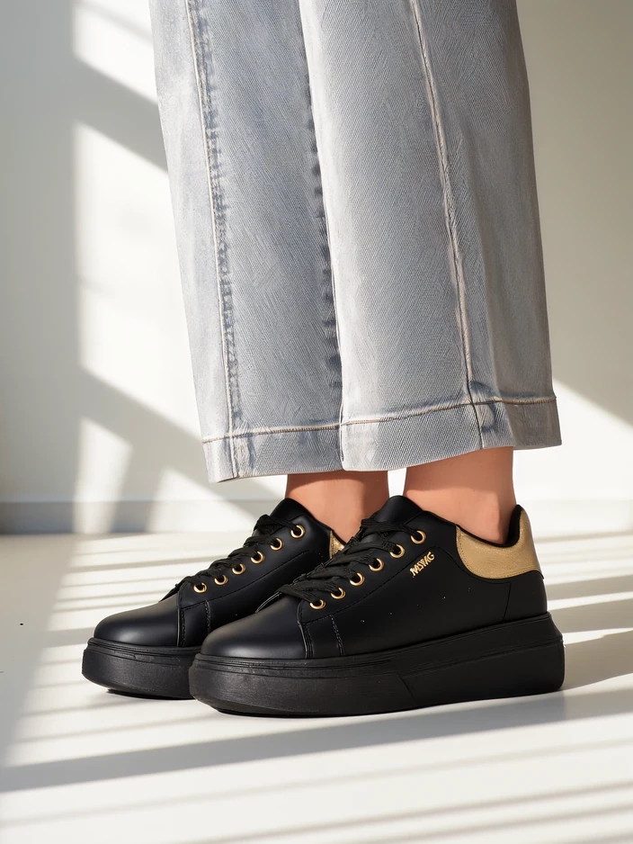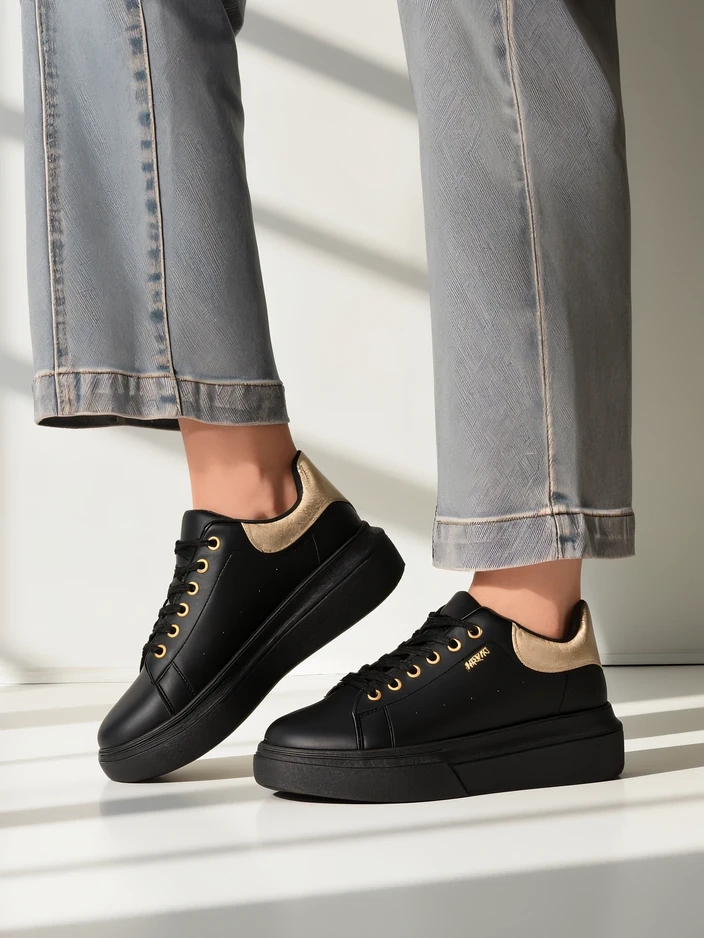 Sneakersy Callista od Royalfashion to wyjątkowa propozycja dla kobiet ceniących wygodę i subtelny styl. Wykonane z wysokogatunkowej skóry ekologicznej, cechują się estetycznym wykończeniem i trwałością. Dzięki procesowi produkcji opartemu na rygorystycznej kontroli jakości i przyjaznym środowisku technologiom, te buty nie tylko prezentują się doskonale, ale również posłużą przez wiele sezonów. Przewiewna, tekstylna wkładka oraz zewnętrzna tkanina zapewniają uczucie świeżości i komfort przez cały dzień.Cechą wyróżniającą model Callista jest solidna, płaska podeszwa o wysokości 4,5 cm, która gwarantuje stabilność oraz wysoki komfort noszenia, nawet przy dłuższych spacerach czy aktywnym dniu. Nosek typu okrągłego oraz klasyczne sznurowanie sprawiają, że sneakersy dobrze układają się na stopie, dopasowując się do jej kształtu. Brak wzoru i jednolita, czarna kolorystyka z kontrastującym zapiętkiem to idealna baza do wielu stylizacji.Buty świetnie wpisują się w obecne trendy – minimalistyczny design, wysoka podeszwa oraz uniwersalność sprawiają, że to must-have na wiosnę, lato i jesień. Stylistycznie możesz je łączyć na różne sposoby:1. Casualowy look – połącz sneakersy z jasnymi jeansami rurkami i prostym T-shirtem, uzyskując wygodny zestaw na co dzień.2. Streetwear – zestaw z krótką sukienką lub spódnicą midi oraz oversize’ową marynarką, podkreślając miejski szyk.3. Sportowa elegancja – załóż do legginsów oraz bluzy z kapturem, idealnie sprawdzą się podczas weekendowych spacerów lub zakupów.Pielęgnacja sneakerów Callista jest bardzo prosta – wystarczy czyścić je wilgotną ściereczką z dodatkiem delikatnego detergentu i suszyć z dala od źródeł ciepła. Zalecane jest także stosowanie środków do pielęgnacji skóry ekologicznej, by zachować ich świeżość oraz elastyczność materiału.Model ten wpisuje się w aktualne tendencje mody miejskiej, gdzie królują wygodne, wyraziste buty na platformie, które skutecznie podkreślają indywidualny styl i dodają pewności siebie każdej stylizacji. Sneakersy Callista Royalfashion to doskonały wybór dla kobiet aktywnych i ceniących nowoczesną klasykę.