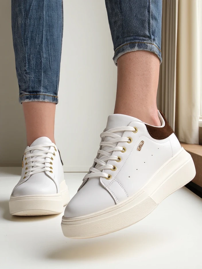 Sneakersy Callista od Royalfashion to wyjątkowa propozycja dla kobiet ceniących wygodę i subtelny styl. Wykonane z wysokogatunkowej skóry ekologicznej, cechują się estetycznym wykończeniem i trwałością. Dzięki procesowi produkcji opartemu na rygorystycznej kontroli jakości i przyjaznym środowisku technologiom, te buty nie tylko prezentują się doskonale, ale również posłużą przez wiele sezonów. Przewiewna, tekstylna wkładka oraz zewnętrzna tkanina zapewniają uczucie świeżości i komfort przez cały dzień.Cechą wyróżniającą model Callista jest solidna, płaska podeszwa o wysokości 4,5 cm, która gwarantuje stabilność oraz wysoki komfort noszenia, nawet przy dłuższych spacerach czy aktywnym dniu. Nosek typu okrągłego oraz klasyczne sznurowanie sprawiają, że sneakersy dobrze układają się na stopie, dopasowując się do jej kształtu. Brak wzoru i jednolita, czarna kolorystyka z kontrastującym zapiętkiem to idealna baza do wielu stylizacji.Buty świetnie wpisują się w obecne trendy – minimalistyczny design, wysoka podeszwa oraz uniwersalność sprawiają, że to must-have na wiosnę, lato i jesień. Stylistycznie możesz je łączyć na różne sposoby:1. Casualowy look – połącz sneakersy z jasnymi jeansami rurkami i prostym T-shirtem, uzyskując wygodny zestaw na co dzień.2. Streetwear – zestaw z krótką sukienką lub spódnicą midi oraz oversize’ową marynarką, podkreślając miejski szyk.3. Sportowa elegancja – załóż do legginsów oraz bluzy z kapturem, idealnie sprawdzą się podczas weekendowych spacerów lub zakupów.Pielęgnacja sneakerów Callista jest bardzo prosta – wystarczy czyścić je wilgotną ściereczką z dodatkiem delikatnego detergentu i suszyć z dala od źródeł ciepła. Zalecane jest także stosowanie środków do pielęgnacji skóry ekologicznej, by zachować ich świeżość oraz elastyczność materiału.Model ten wpisuje się w aktualne tendencje mody miejskiej, gdzie królują wygodne, wyraziste buty na platformie, które skutecznie podkreślają indywidualny styl i dodają pewności siebie każdej stylizacji. Sneakersy Callista Royalfashion to doskonały wybór dla kobiet aktywnych i ceniących nowoczesną klasykę.