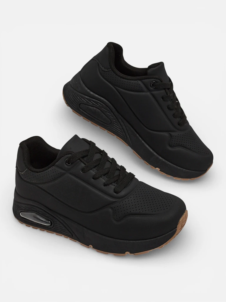 - Дамски спортни обувки, изцяло изработени от матова екологична кожа. Модел с платформа. С връзки. Ще се съчетават отлично с ежедневни облекла!
