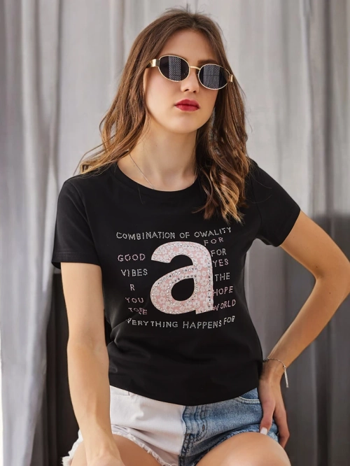 - Дамската памучна тениска е удобен и стилен вариант за всекидневно носене. Изработена от мек памук, тя осигурява комфорт през целия ден. Украсена с дискретен модел.
