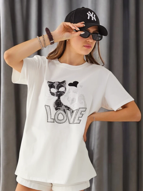 - Памучната дамска тениска е леко и удобно решение за всеки ден. Вдъхновена от положителен слоган, тя е перфектна за ежедневни облекла. Меката материя осигурява комфорт, а минималистичният дизайн я прави подходяща за различни тоалети.