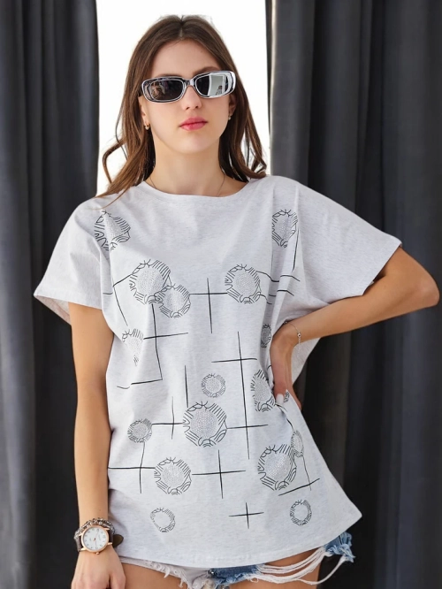 - Тази дамска памучна тениска е лек и удобен вариант за всеки ден. Вдъхновена от позитивен слоган, тя е перфектна за неформални аутфити. Меката материя осигурява комфорт, докато минималистичният дизайн позволява да се съчетава добре с различни тоалети.