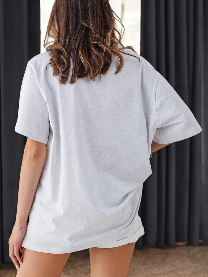 • Женската памучна тениска е лека и удобна опция за всеки ден. Вдъхновена от положителен слоган, тя е идеална за неформални облекла. Меката платка осигурява комфорт, а минималистичният дизайн я прави подходяща за различни комбинации.