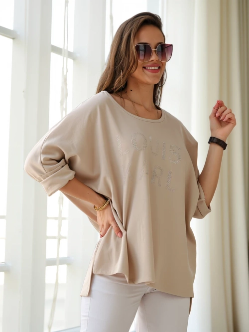 Royalfashion Дамска блуза от вискоза с букви от камъни