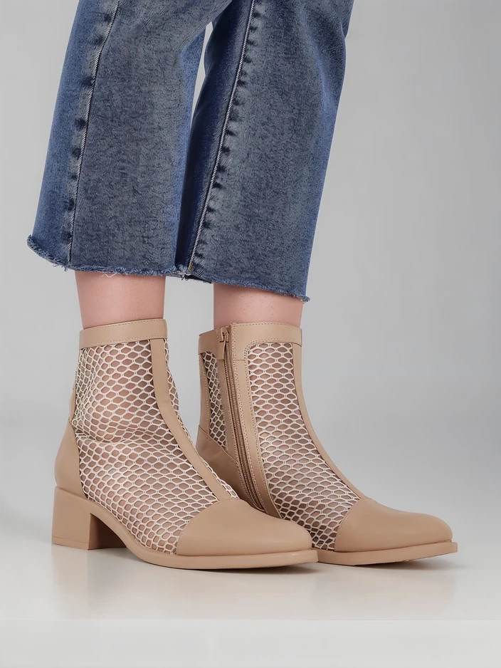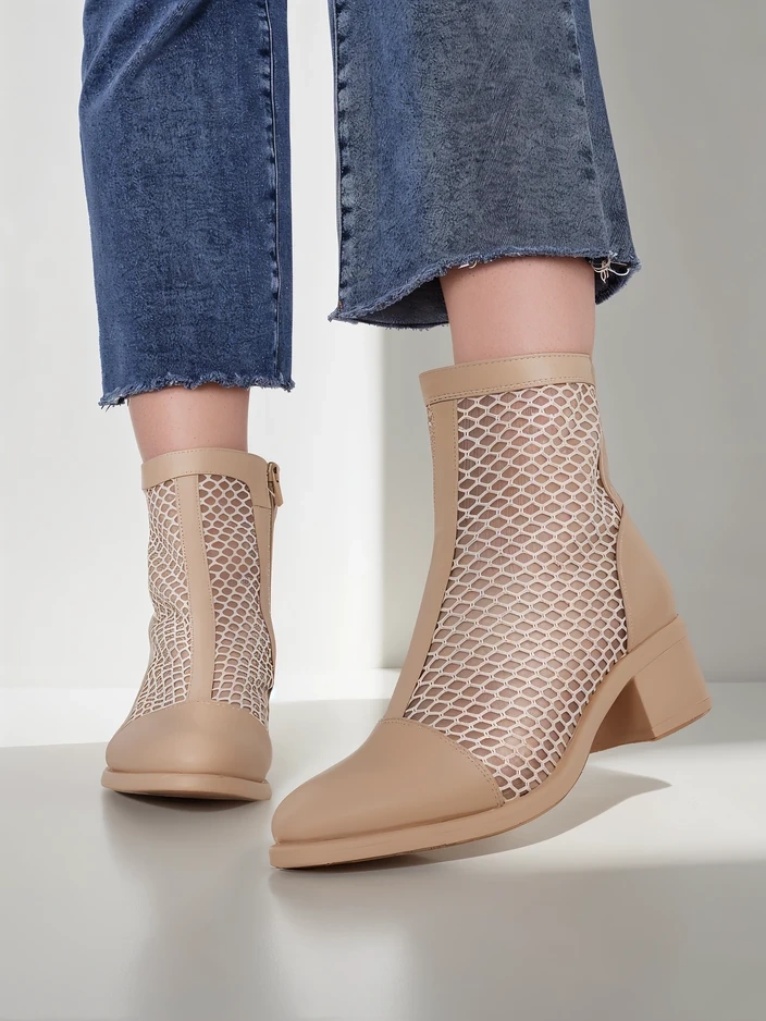- Уникални дамски обувки за глезен, изработени от мрежеста материя и еко-кожа с перфорирано покритие и еко-кожена стелка. Моделът се закопчава с цип. Перфектни за есенни аутфити!.