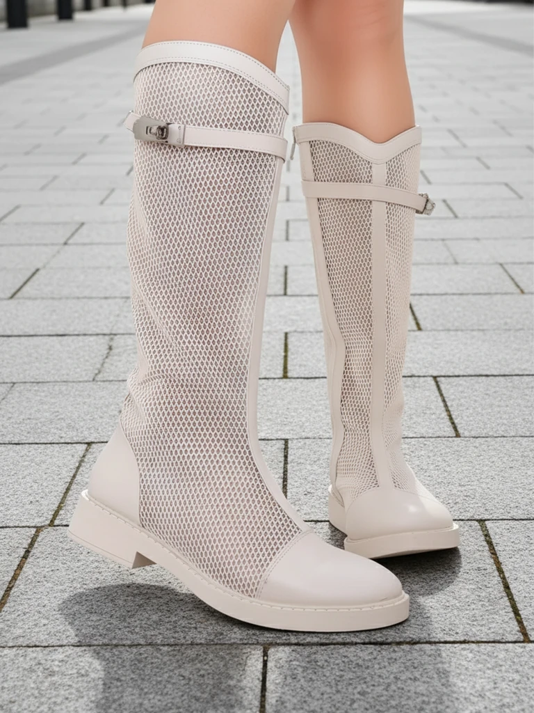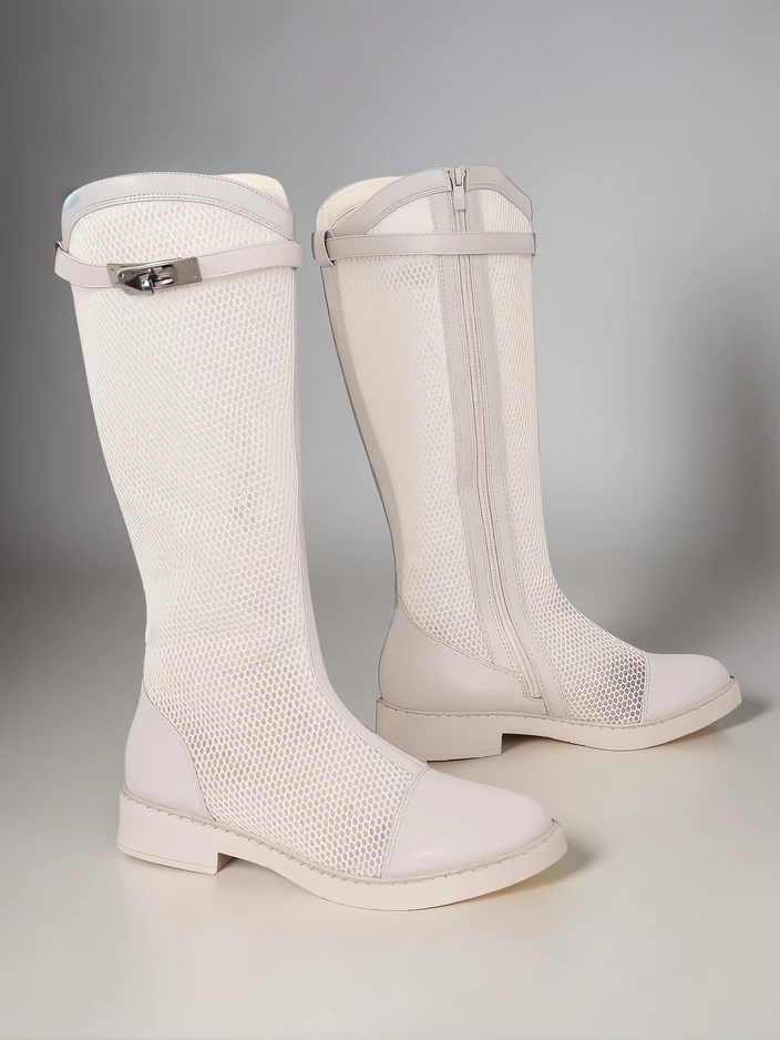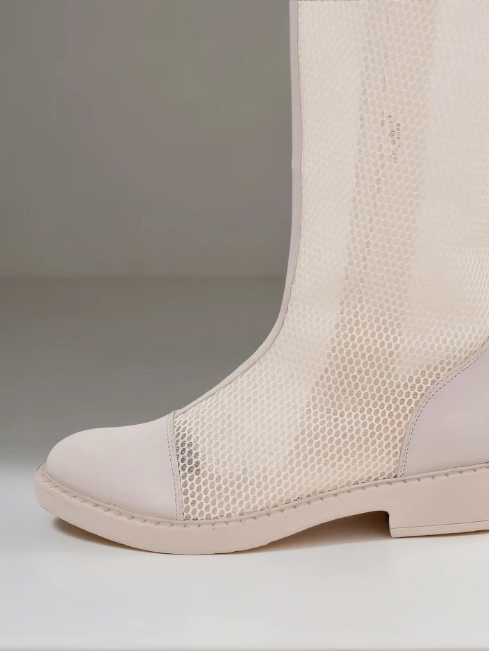 - Уникални дамски боти до глезена, изработени от мрежесто тъкане и еко-кожа с перфорирана завършек и еко-кожена стелка. Моделът е с цип. Перфектни за есенни облекла!