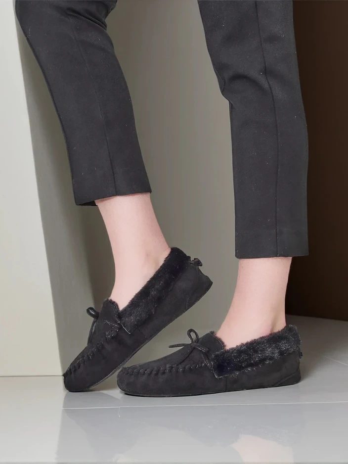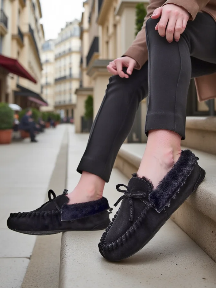 - Стилни дамски мокасини на плоска подметка. Парчето е изработено от велурена еко-кожа. Интериорът е с подплата от кожа. Има декоративна панделка на пръстите. Перфектни за ежедневни тоалети!