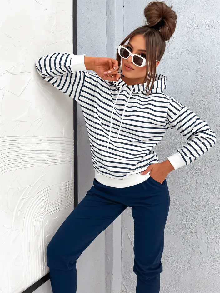 - Женски комплект треньор, изработен от приятна материя. Суитшърт с качулка, който се надява през главата. Панталони с еластичен ластик и 2 джоба. Идеален комплект за разходка! ЗАБЕЛЕЖКА: Точност на измерванията (+/-) 1 см.