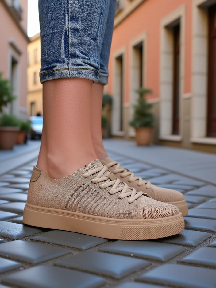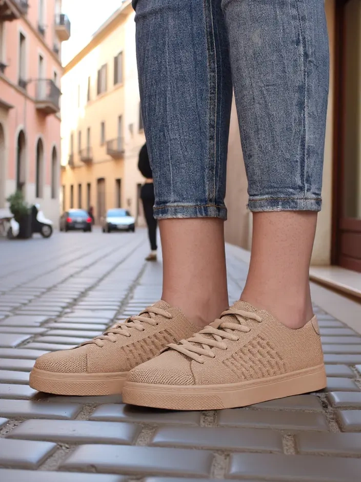 - Оригинални дамски спортни обувки с връзки, изработени от текстилен материал. Елaстичният горен слой удобно се адаптира към стъпалото. Удобни дамски обувки за ежедневно носене!
