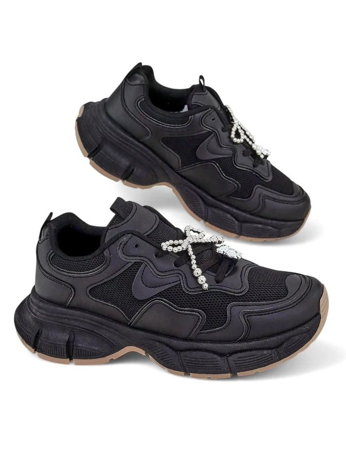 - Женски спортни обувки, изработени от екологична кожа и мрежа. Модел на по-дебела подметка. С връзки. Перфектно ще се съчетават с ежедневни облекла! Украсяват се с подвижна верижка.