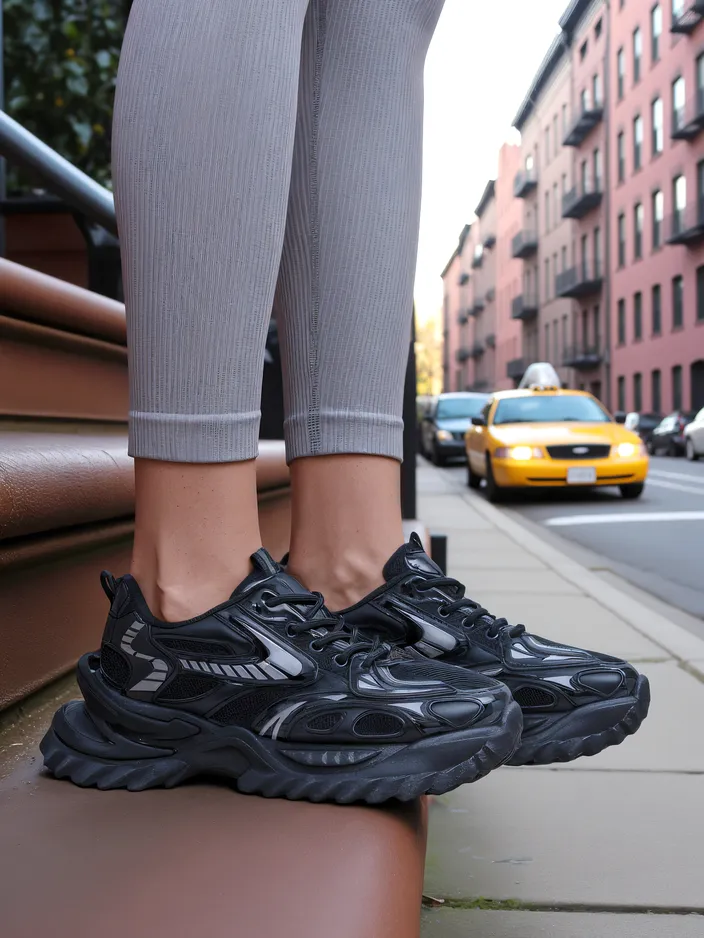 - дамски спортни обувки от патентована еко-кожа и мрежа. Модел на по-дебела подметка. Закопчаване с връзки. Те ще се съчетават перфектно с ежедневни аутфити!