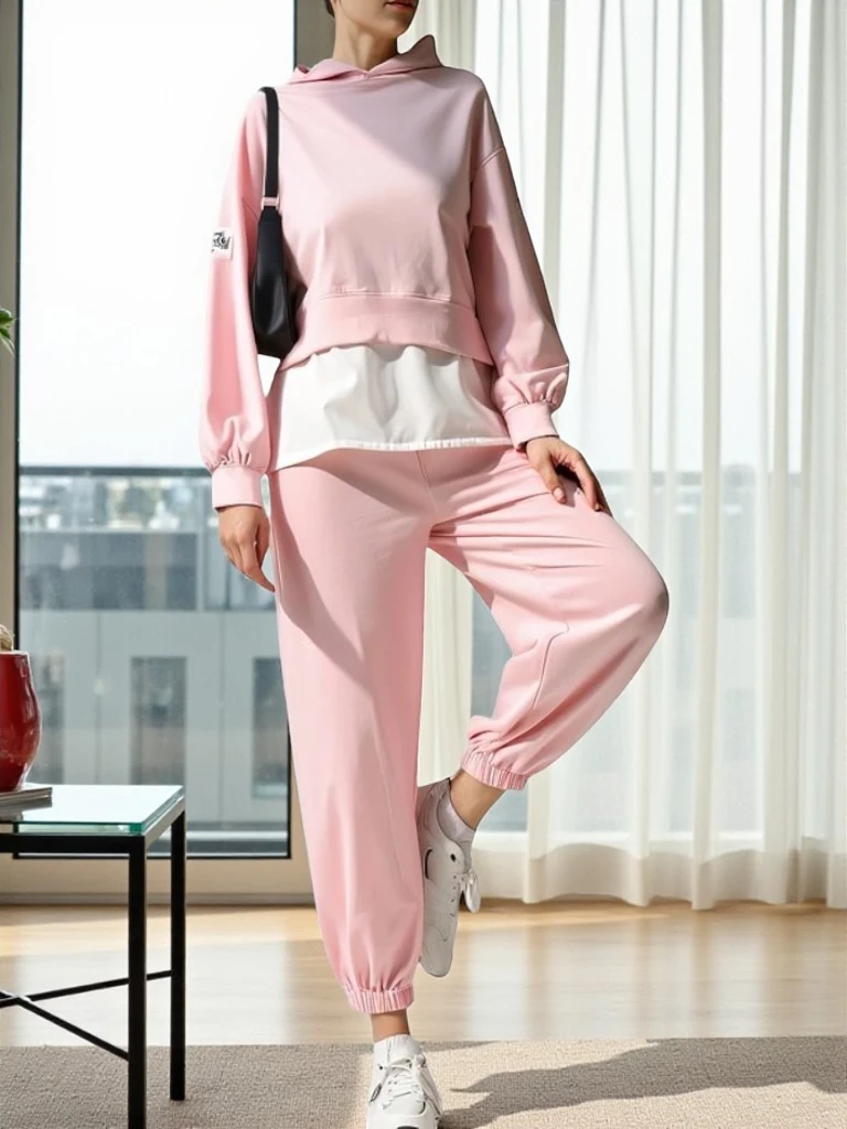 - Дамски неформален комплект, изработен от приятен плат. Пуловерът има дълги ръкави и риза прикачена. Панталоните имат 2 странични джоба, еластичен колан и маншети. Перфектен за тези, които ценят комфорта.
