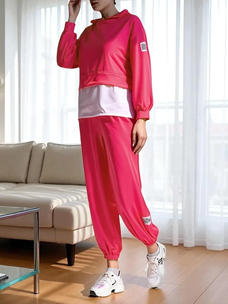 - Дамски неформален комплект, изработен от приятен плат. Пуловерът има дълги ръкави и риза прикачена. Панталоните имат 2 странични джоба, еластичен колан и маншети. Перфектен за тези, които ценят комфорта.
