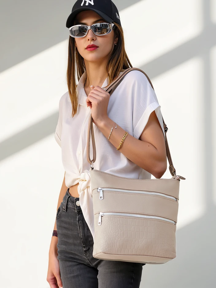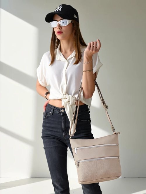 - Малка дамска чанта, закопчаваща се с капаче и цип, изработена от еко кожа. Моделът има 1 отделение, 3 вътрешни джоба и 3 външни джоба. Освен това разполага с отделяема, регулируема презрамка. Перфектна за ежедневно използване!