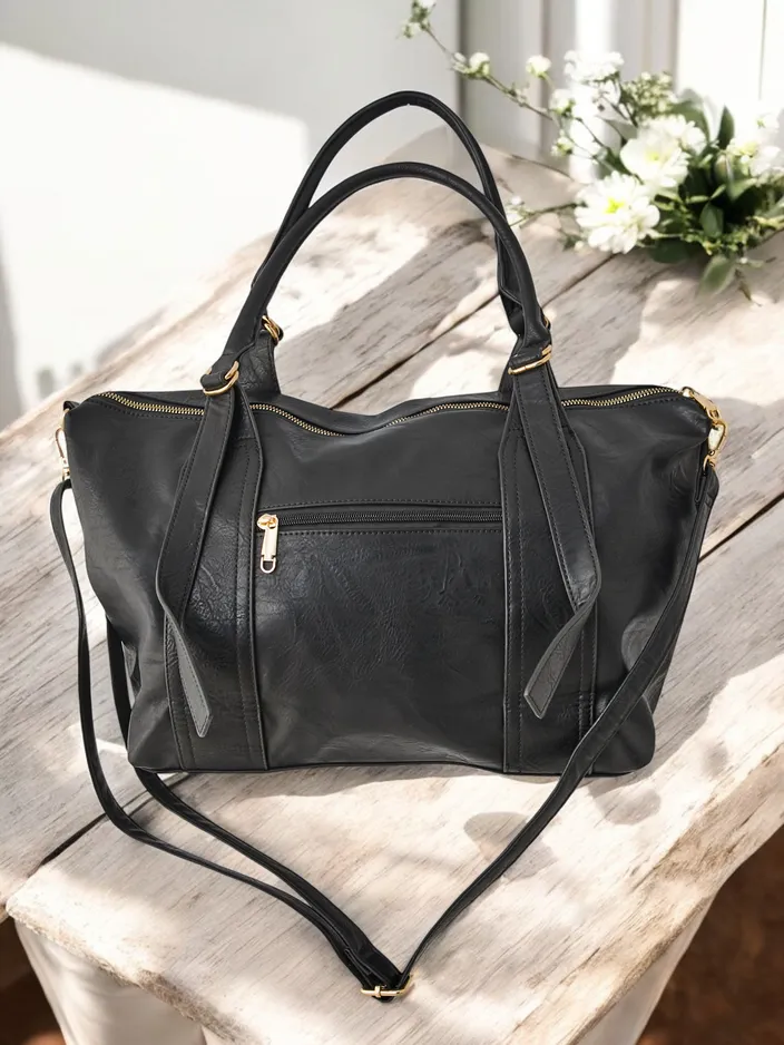 • Дамска чанта с цип, изработена от еко-кожа. Моделът разполага с 1 отделение, 3 вътрешни джоба и 1 външен джоб. Допълнително има сваляща се, регулируема презрамка. Перфектна за ежедневно ползване!