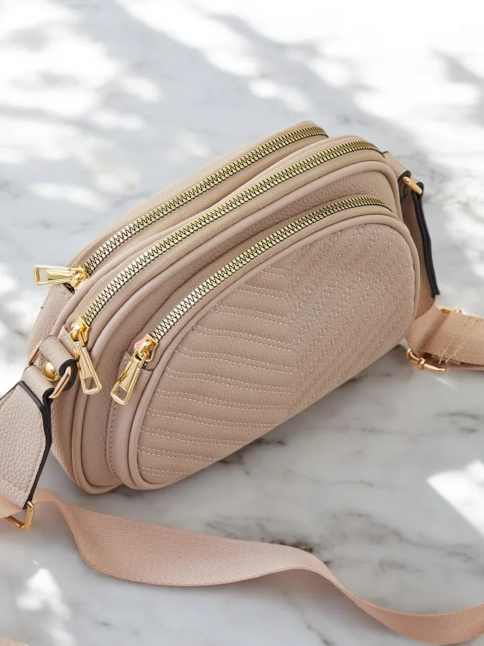 • Дамска овална чанта с цип, изработена от еко кожа. Моделът разполага с 1 отделение, 2 вътрешни джоба и 2 външни джоба. Допълнително има detachable, регулируема дръжка. Перфектна за ежедневна употреба!