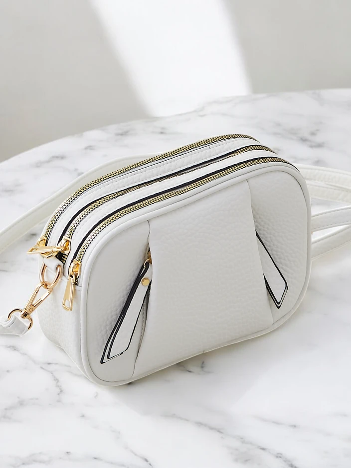 - Малка дамска чанта с цип от екологична кожа. Моделът има 3 отделения и един джоб. Допълнително разполага с откачваща се, регулируема дръжка. Перфектна за ежедневна употреба!