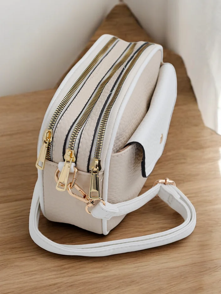 - Малка дамска чанта с цип и магнитно закопчаване, изработена от екологична кожа. Моделът разполага с 3 отделения и външен джоб. Освен това, идва с отделен, регулируем презрамка. Перфектна за ежедневна употреба!