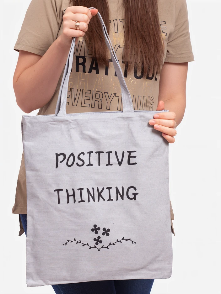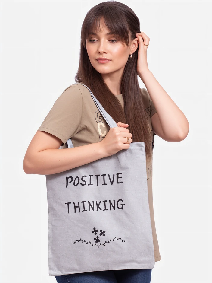 - Класическа чанта за рамо, изработена от мек текстил с декоративен бял принт отпред. Закопчаване с цип. Вътре има голямо отделение и малък джоб с цип. Идеална за пазаруване!